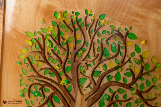 Wood and Epoxy Wall Art - Walnut Tree - Epoxy Leaves - One of a kind