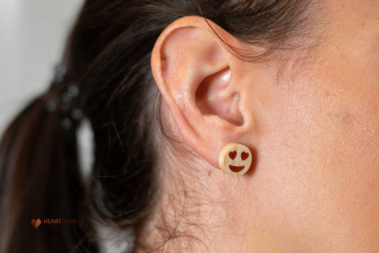 Heart Eyes Emoji Earrings - Maple with Red Epoxy Resin