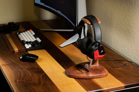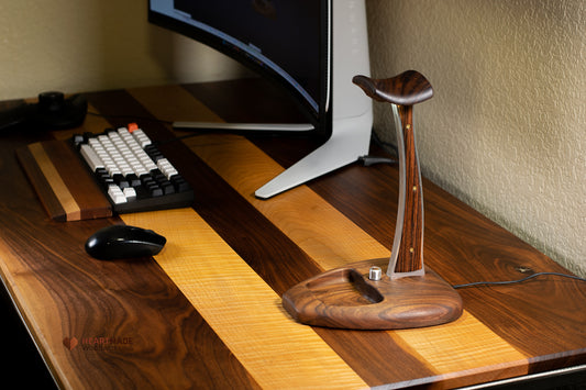 Walnut and Zebrawood Headphone Stand with LED Lighting